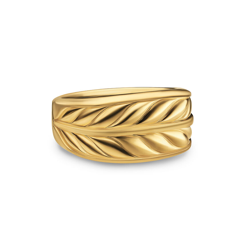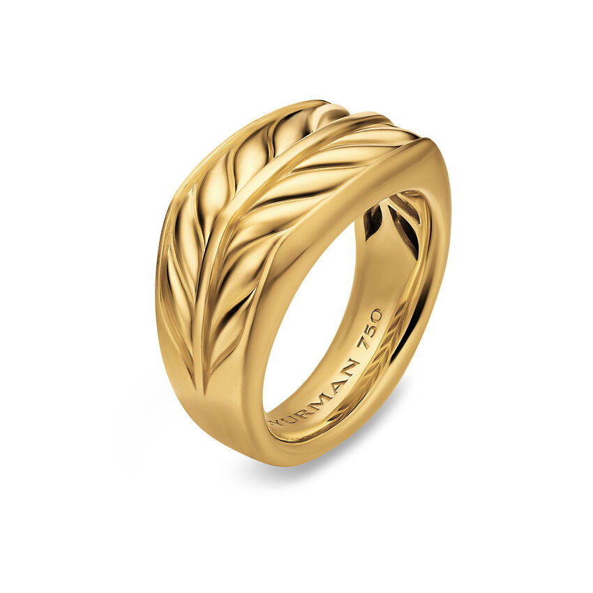 David Yurman skillfully reinterprets chevron—the ancient V-shaped pattern used in architecture and art—in this modern, sculptural collection. Viewed in relation to one another, each half of the motif is a mirror image of Cable.