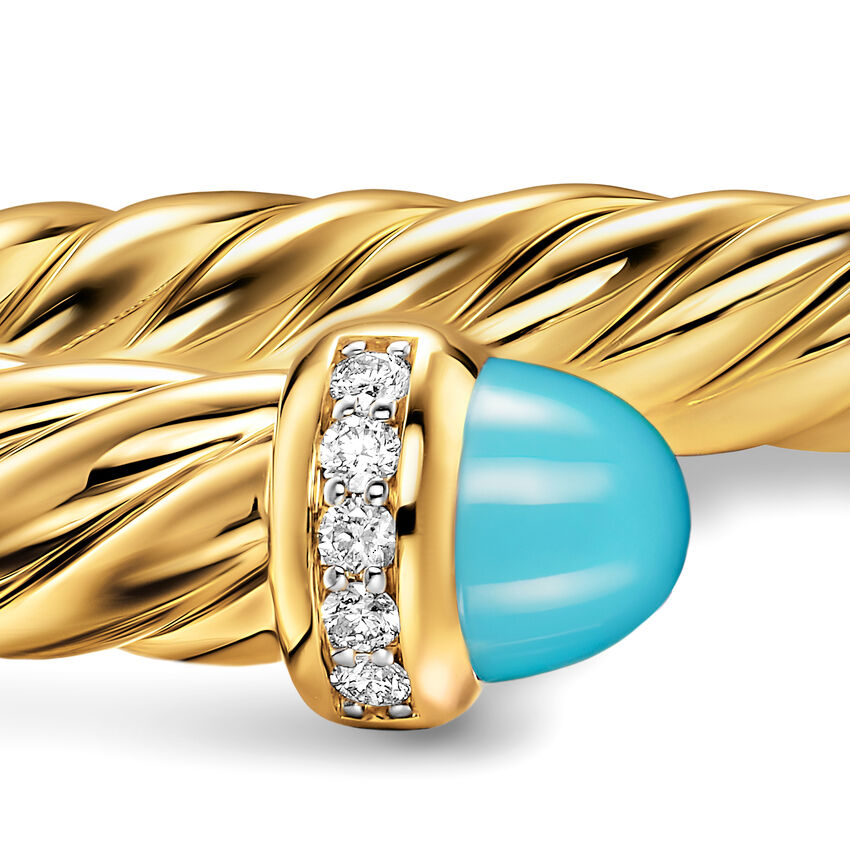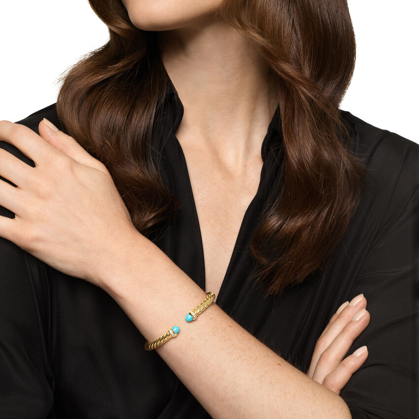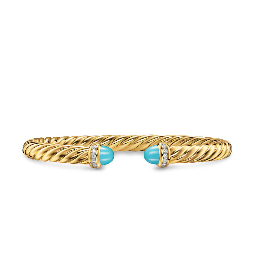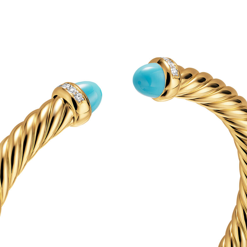 18-karat yellow gold • Turquoise, Pavé set diamonds, 0.13 total carat weight • Bracelet, 6mm • Cablespira® is a patented DY construction that is highly flexible and exceptionally comfortable to wear.
