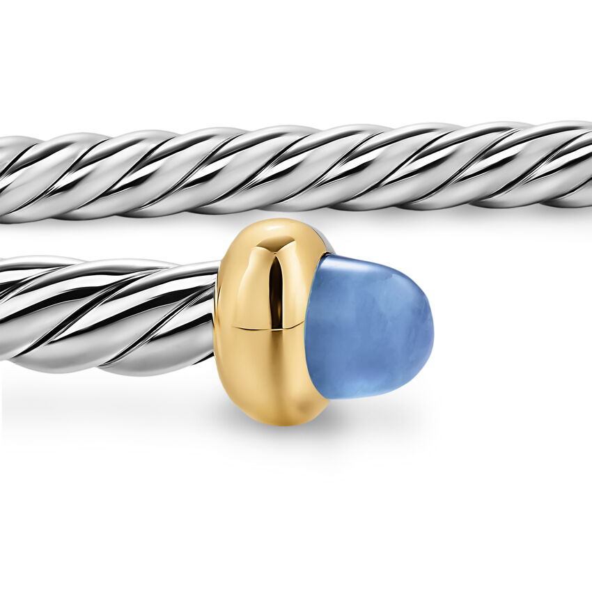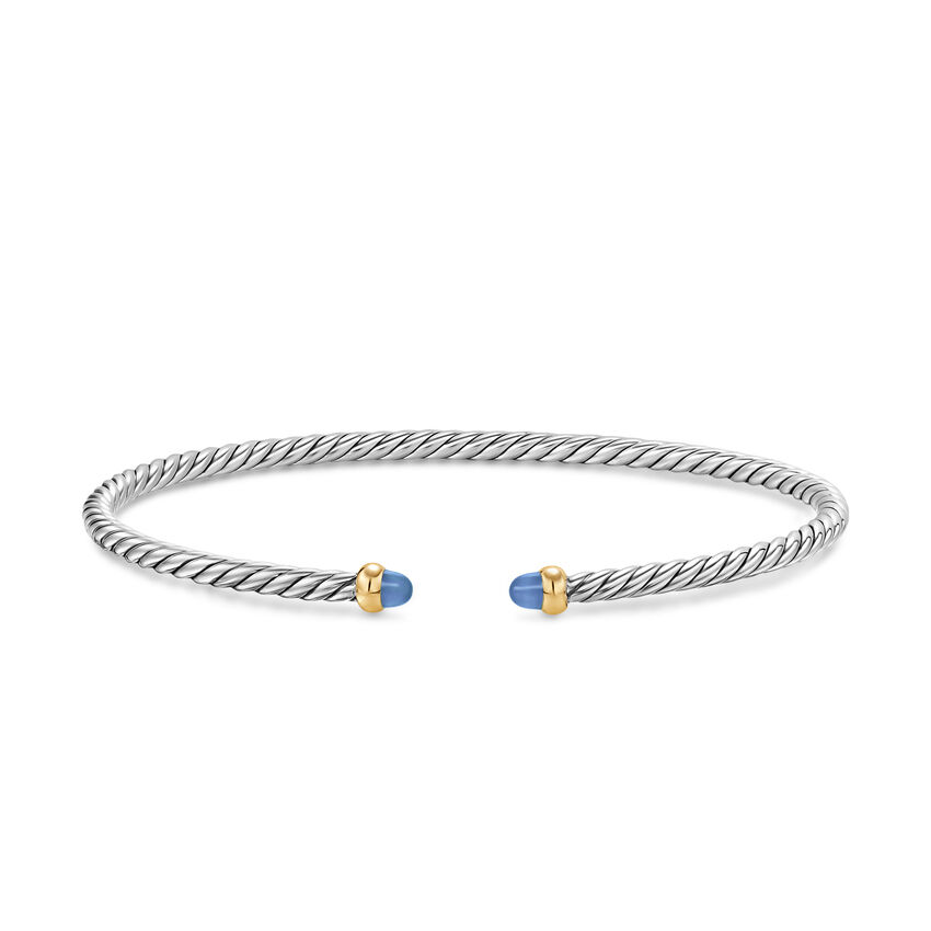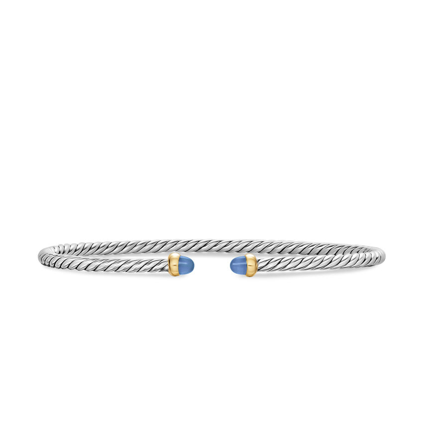 Micro Cable Flex® Bracelet in Sterling Silver with 14K Yellow Gold and Blue Sapphires, 2.6mm