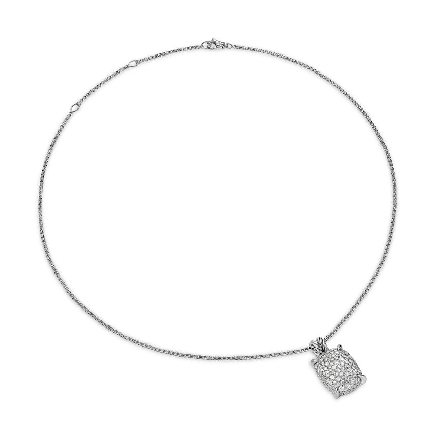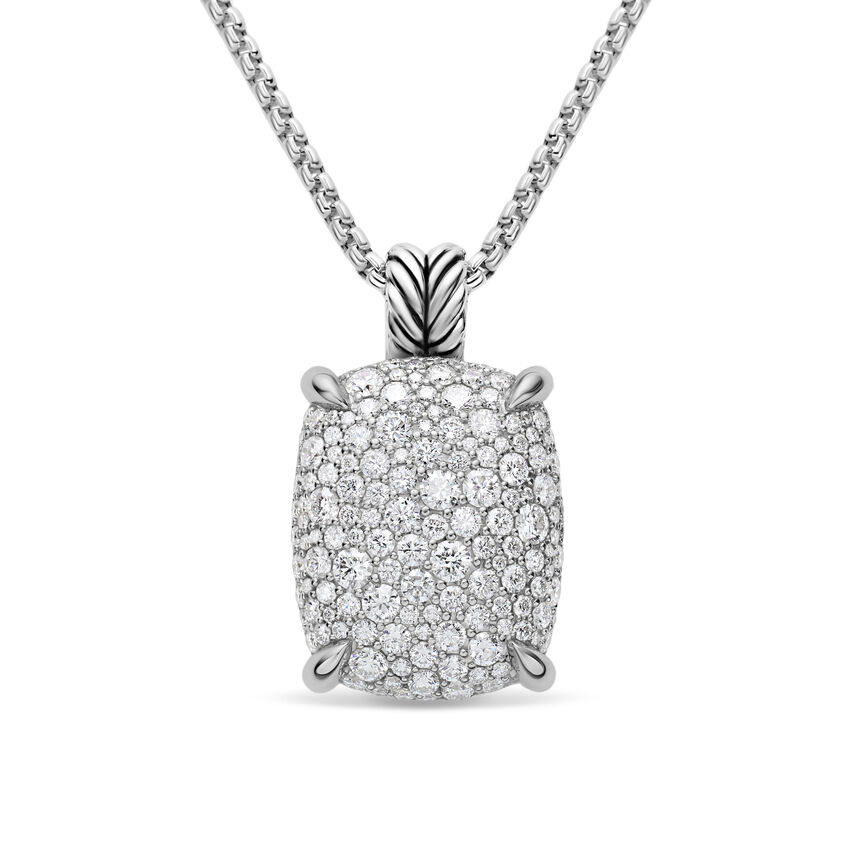 Sterling silver • Pavé-set diamonds, 1.75 total carat weight • Pendant, 19 x 15mm • Chain. 1.7mm • Lobster clasp-